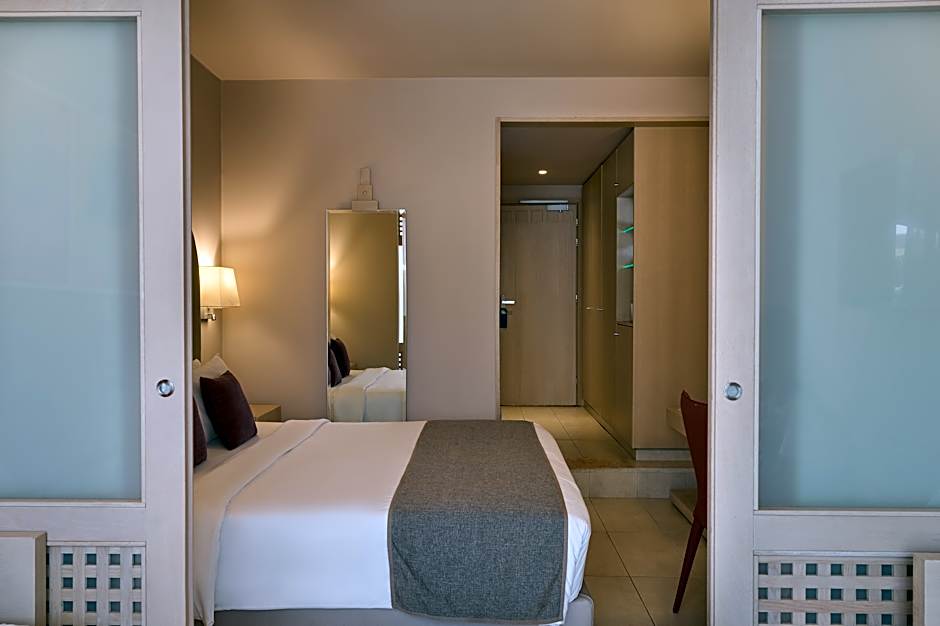 Double Room Swim up Inland View is 269 square feet and includes a double bed 131-150 width and is Wheelchair-accessible.